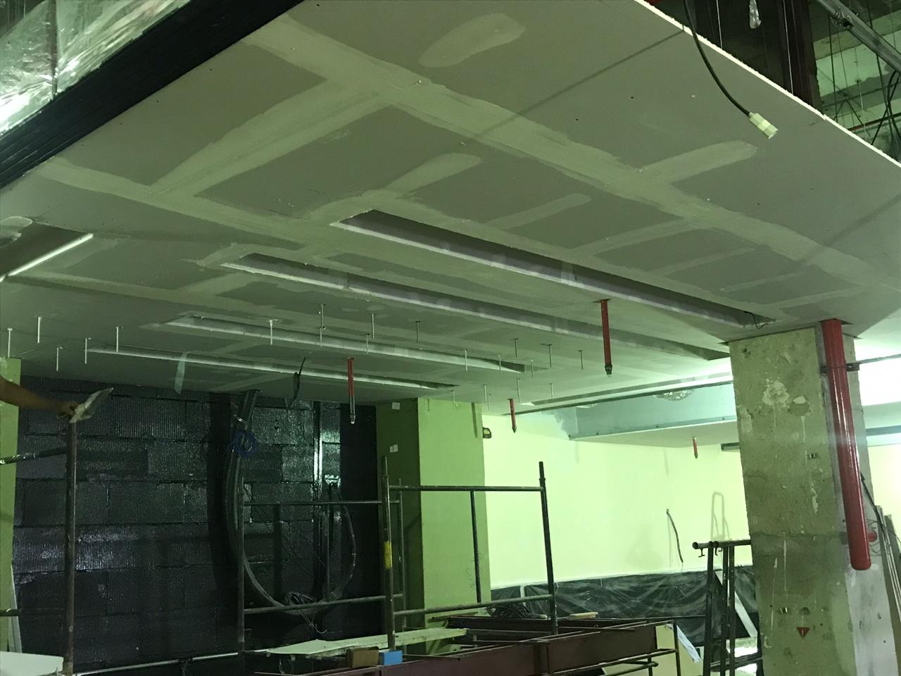 Na unidade do Outback, executamos o forro de gesso suspenso e forro acústico mineral, proporcionando um acabamento limpo, moderno e funcional.